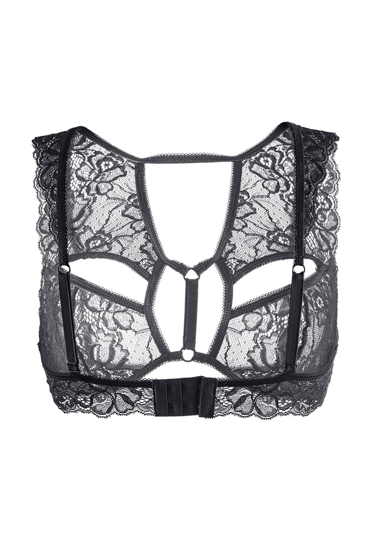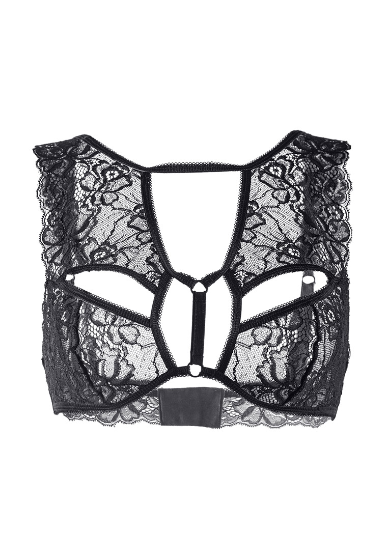 Мягкий кружевной топ Erolanta® Marisa с декоративными вырезами, стрепами и перемычками. Свободный ажурный край. Регулируемые бретели. Многорядная застежка на спине.