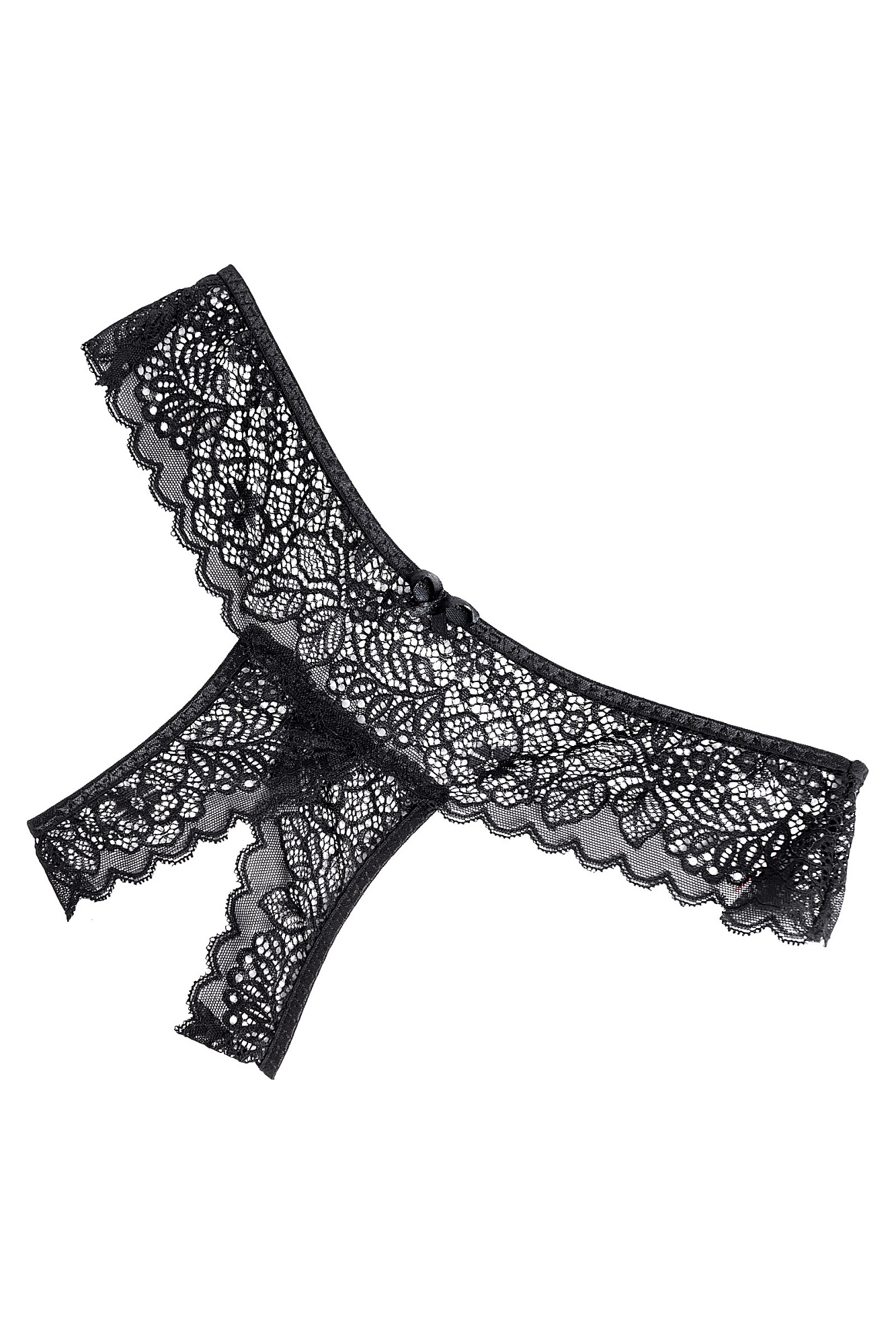 Ажурное эластичное кружево создает соблазнительный узор на коже и выгодно подчеркивает бедра. В модели предусмотрен скрытый доступ, что добавит обжигающей страсти в сексуальную близость. Трусики подходят для тренировки интимных мышц.